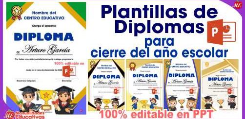 10 Modelo de Plantillas de Diplomas para cierre del año escolar 100% Editables en el Programa de Power Point Descarga, Edita, imprime y entrega en tu clausura...